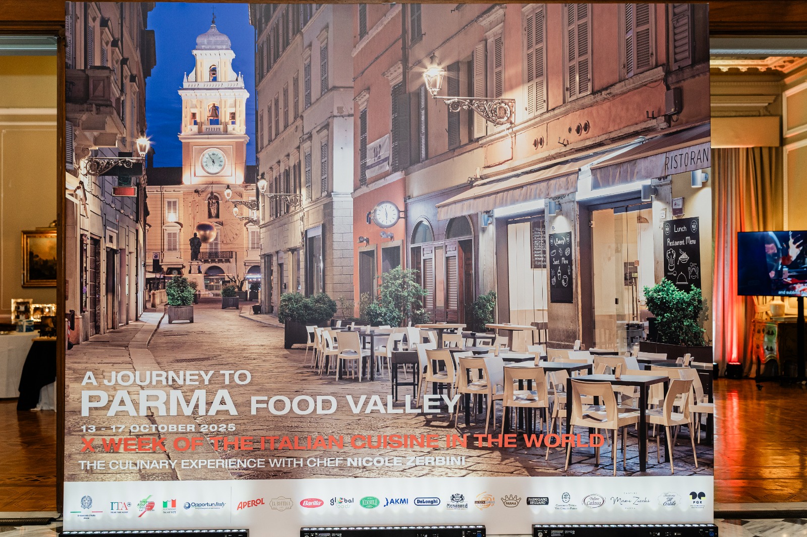 L’evento è stato reso possibile grazie al contributo di Parma Alimentare, dei Consorzi del Parmigiano Reggiano e del Prosciutto di Parma, delle Cantine Moroni Zucchi e di aziende d’eccellenza tra cui Barilla – multinazionale di Parma con una presenza produttiva in Grecia – Campari e De Longhi.